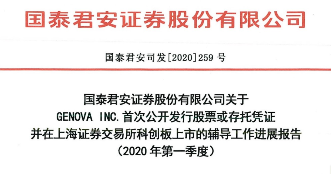 4月22日,作为山东省首家被认定为独角兽的企业,GENOVA INC.(杰华生物股份有限公司,以下简称“杰华生物”)首次公开发行股票辅导工作进展报告在青岛证监局官网披露。