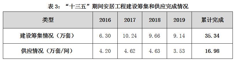 2016-2019年底,全市安居工程建设筹集共计35.34万套,已完成“十三五”规划任务的88%,安居工程供应16.98万套/间。同期,全市面向低保、低保边缘家庭及低收入家庭累计发放住房租赁补贴0.53亿元,发放人才安居补贴共计23.73亿元。
