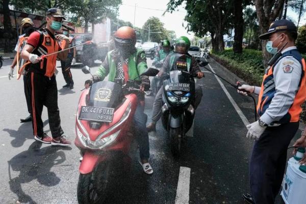 印尼人似乎对消毒水灭病毒的办法情有独钟。在巴厘岛的交通干道上,地方政府也安排了执勤人员往过往行人和车辆上喷洒消毒水。