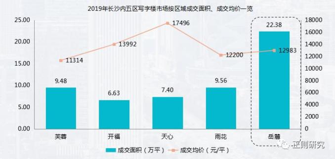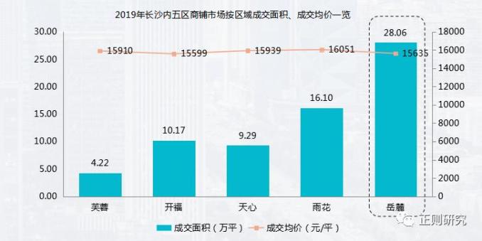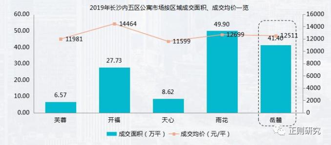 (1)公寓成交统计:长沙内五区公寓成交总面积134万方,其中岳麓区成交面积41万方,成交量位居第二,均价12511元/㎡。
