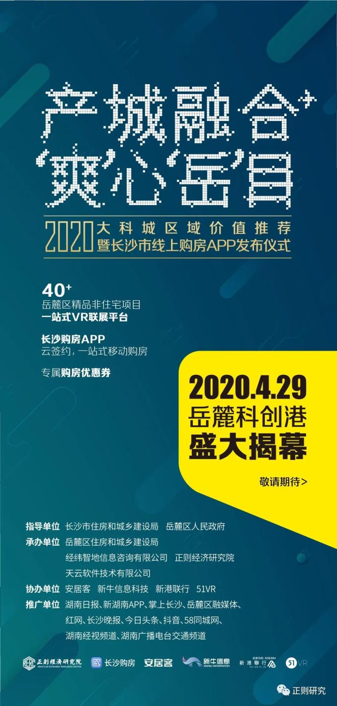 2020年,长沙平稳度过新冠疫情,房地产行业在“房住不炒”的政策基调下,政府、企业、市场都将目光聚集到了非住宅存量去化的课题上。在长沙市住房和城乡建设局、岳麓区人民政府的指导下,岳麓区住房和城乡建设局、经纬智地信息咨询有限公司、正则经济研究院、湖南新港联行等多家机构率先响应号召,推出【产城融合爽”心“岳”目】2020大科城区域价值线上平台,意图搭建非住宅存量去化的交流与展示平台,帮助非住宅更好的去化。在房地产行业转向存量时代的背景下,希望通过集聚多方力量,推动行业呈现良性发展循环。