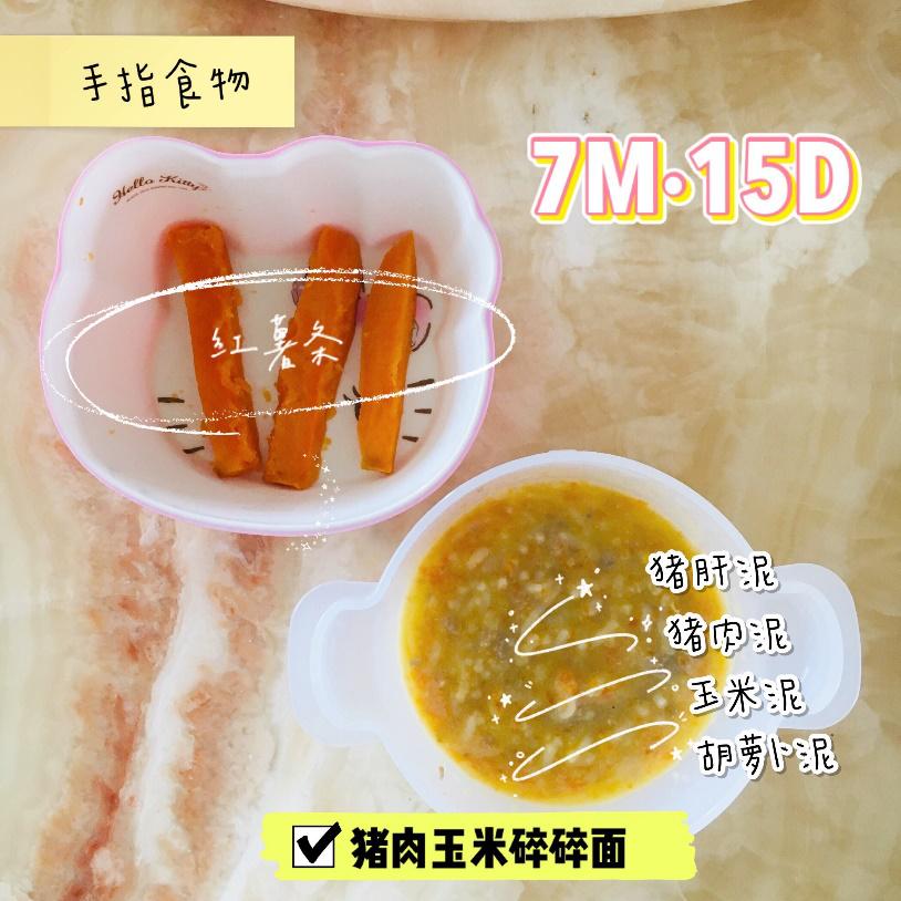 猪肉猪肝玉米胡萝卜碎碎面+手指食物红薯条