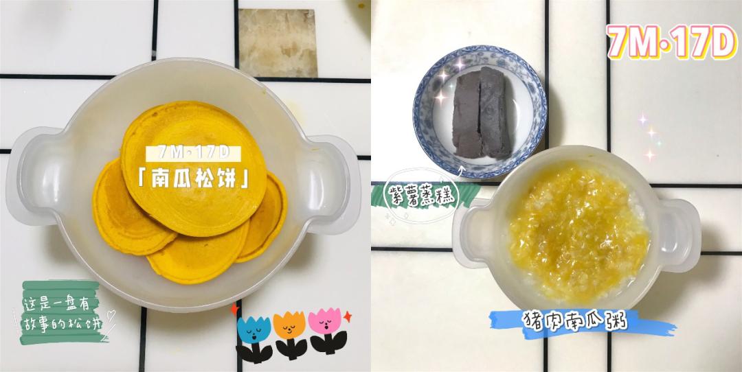 南瓜胡萝卜素含量非常丰富,橙橙的颜色非常令人喜爱。紫薯也是很好的调节辅食颜色的食材。