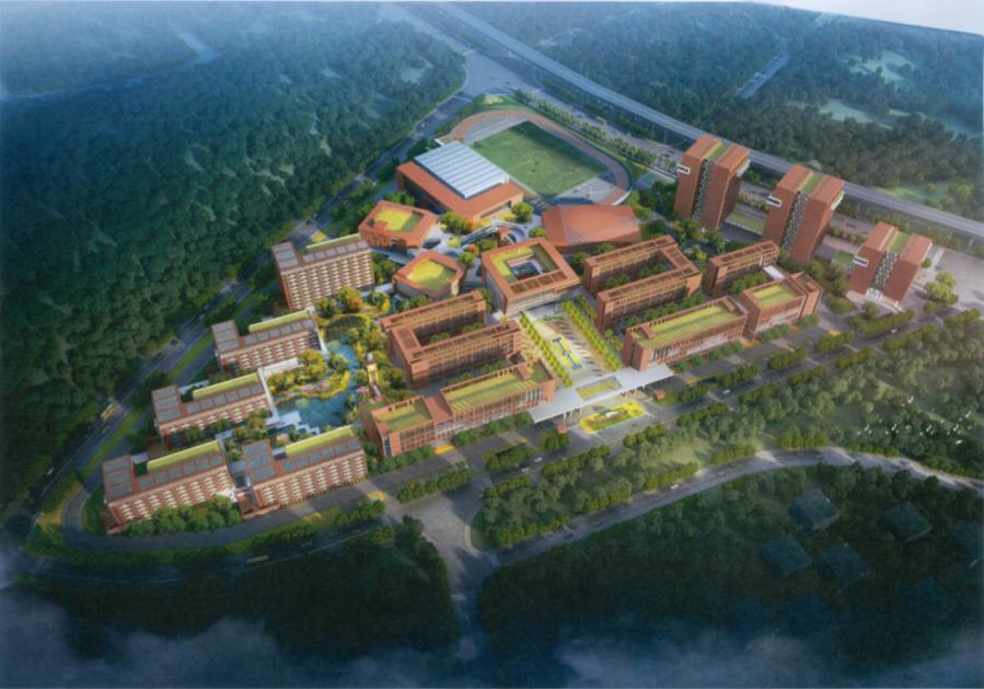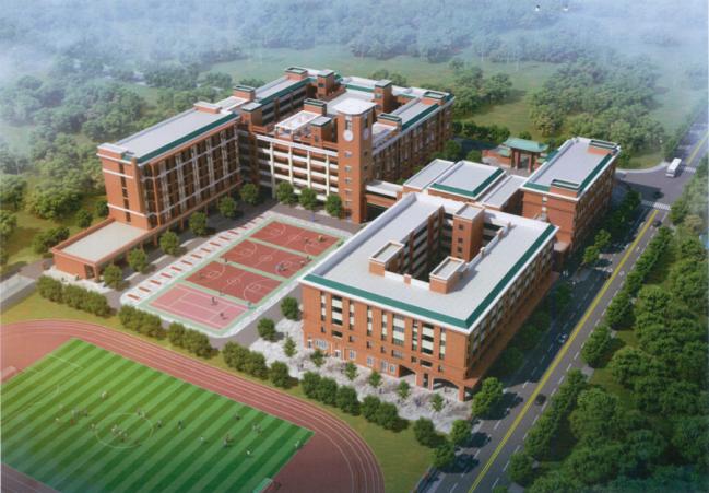 学校选址在滨江新区启动区PJ01—P/W/X地段,计划建设成为九年一贯制学校。拟建学校规模为:初中36个教学班,可提供初中学位1800个;小学48个教学班,可提供小学学位2160个。总建筑面积约为106000平方米,建设内容包括教学楼、办公综合楼、实验楼、体育馆、宿舍楼、食堂、地下车库、400米环跑塑胶跑道运动场及相应配套设施建设。