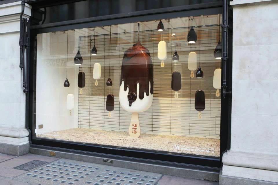 橱窗是吸引流量的第一要素。天气渐热,你可以在橱窗里做一些富有夏天元素的场景,比如大海、冰淇淋等。