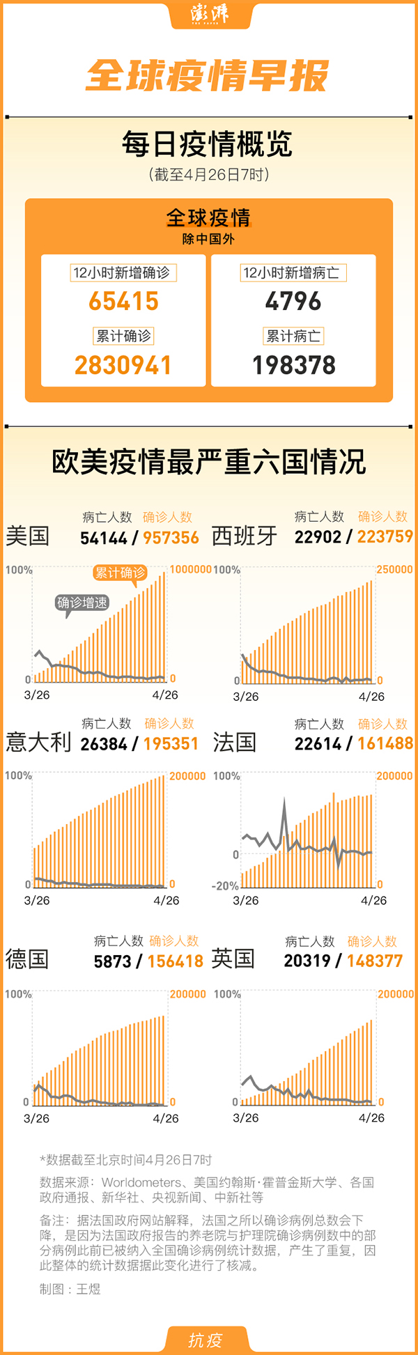 全球疫情早报|国外确诊破283万例,美国确诊破95万例