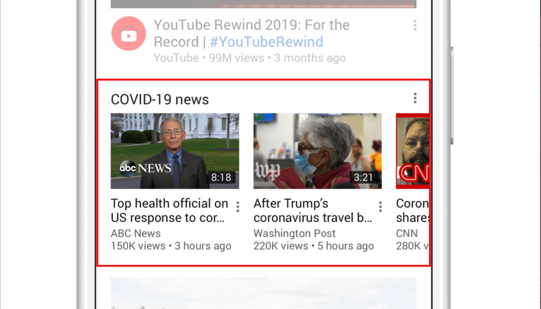 洗手视频、防疫教育、免费原创节目上线,自疫情在海外蔓延以来,越来越多的人们同时在通过YouTube关注疫情的信息并寻找居家隔离的娱乐措施, 整体流量增长约为15%左右。在YouTube关联至卫生机构的信息面板,浏览量已超过100亿次。此外,YouTube的主页上也增加了关于新冠病毒的标签, 提供关于疫情的权威信息。