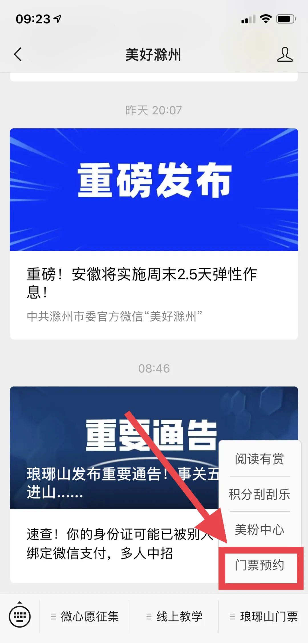 点击“琅琊山门票”-“门票预约”