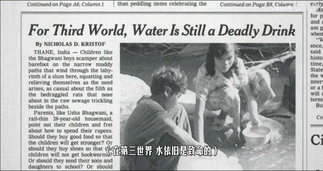 1997年,纽约时报作者尼古拉斯·克里斯托夫发表了一篇名为《在第三世界,水依然可致人死亡的》的报道。