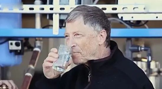当着大家的面,比尔·盖茨亲自喝下了这杯用粪便做成的纯净水,笑得无比开心。