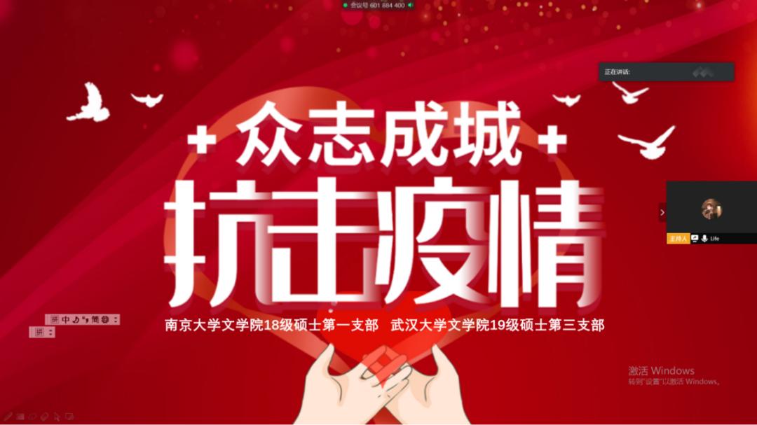 近日,南京大学文学院2018级硕士第一支部与武汉大学文学院2019级硕士第三支部成功举办“抗击疫情,守望互助”联合党日活动。