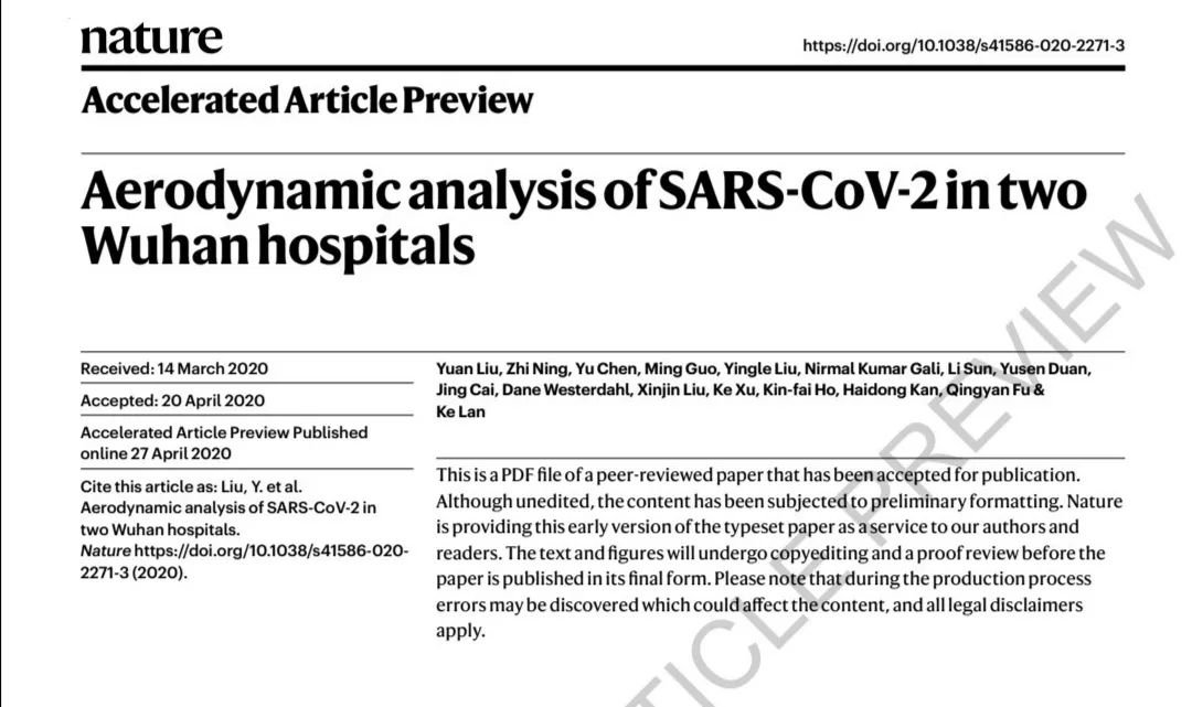 原标题:《刚刚,《自然》发表武大蓝柯教授团队新冠病毒气溶胶研究成果》