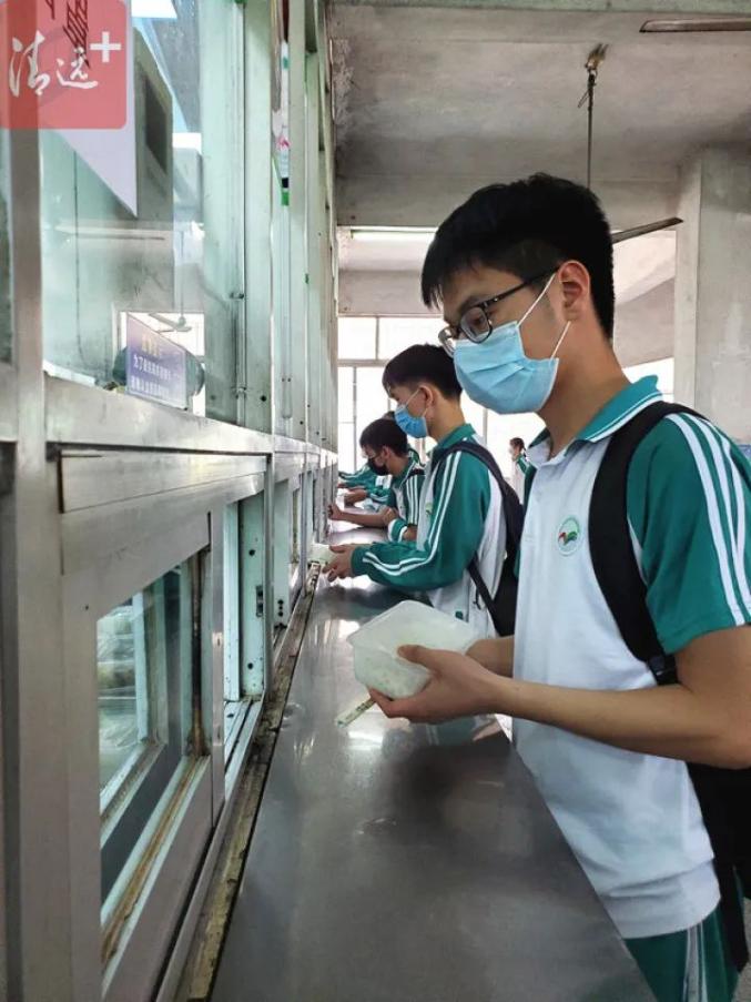 固定编号,固定座位,还有小挡板隔开,这安全措施妥妥的!清远市第一中学专门为学生设置了四个套餐,学生提前选定套餐后到窗口领餐,减少排队时间,每个学生就餐的时间也限定在20分钟内。菜品方面也以常见的肉类及蔬菜为主。