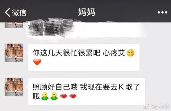 Papi曾酱发了一条微博,配图是她和妈妈的微信对话: