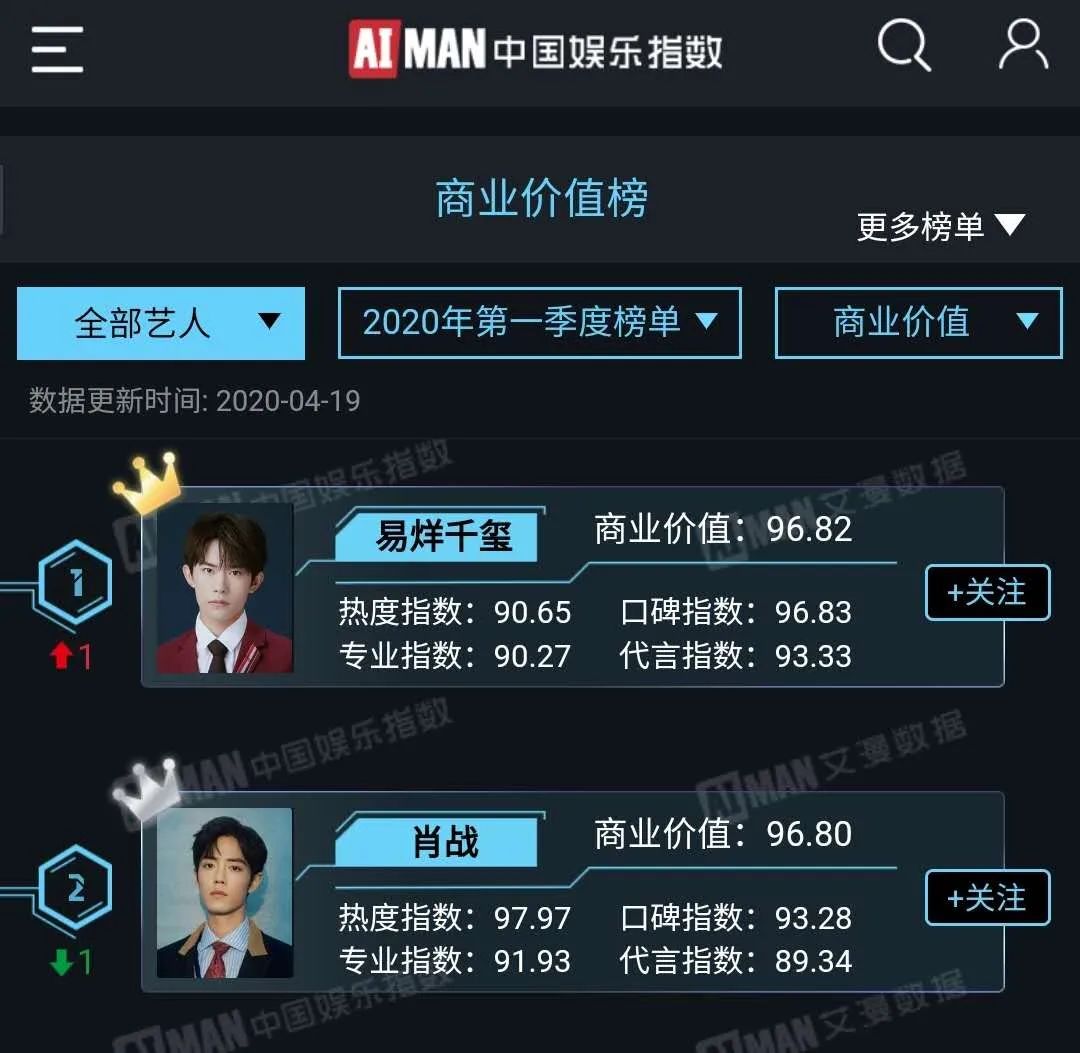 虽然正式复出前的律师函并未取得理想效果,“227事件”对肖战本人影响也颇大,此次肖战复工,粉丝团结一心,更胜从前,根据艾曼数据,第一季度肖战商业价值位居第二。