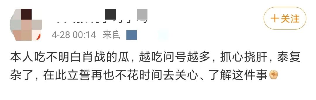 “227事件”余温尚在,“427大爆炸”的故事还有人在围观,但只有“陪跑”的人知道一切。大部分置身事外的人才不会细细分辨谁带着谁的粉籍,她(他)们只会再次看到肖战及其粉丝的负面新闻时,加深初印象。过程不重要,结果和自己对日复一日占用着“公关资源”的态度才重要。