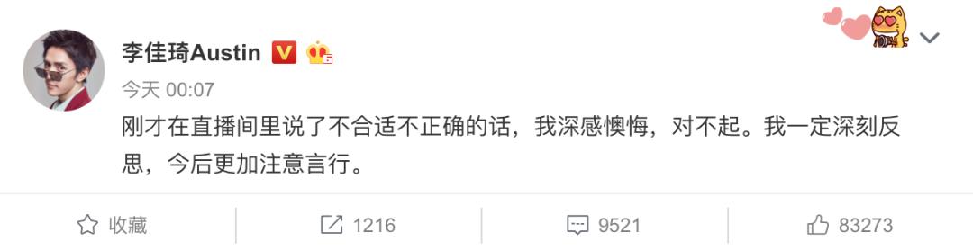 此时此刻的李佳琦已经完全应验了自己前面的「担心」: