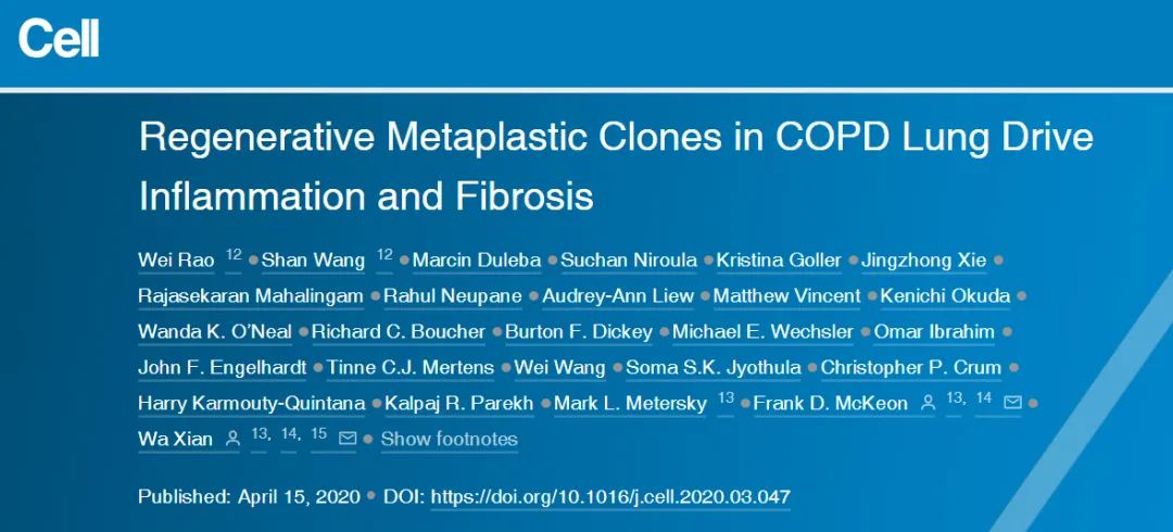 这项研究提出变异的肺干细胞导致化生性病变,是慢阻肺的病因,而不是次要结果。