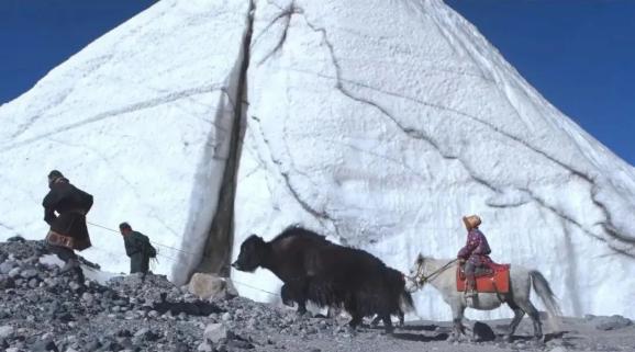 这天,卓玛坐在马上,家人们牵着牦牛,走了三个小时去到雪山脚下点起桑烟,祈求神山的庇佑。