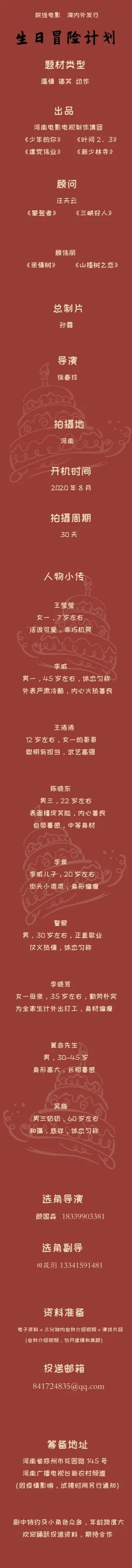 邮件标题/微信申请提示“演员角色/剧组岗位+真实姓名”。请发送个人简历,作品视频,照片(演员),至联系人。