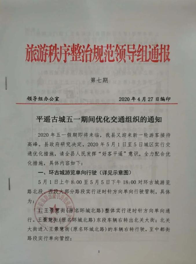 平遥古城五一期间优化交通组织的通知