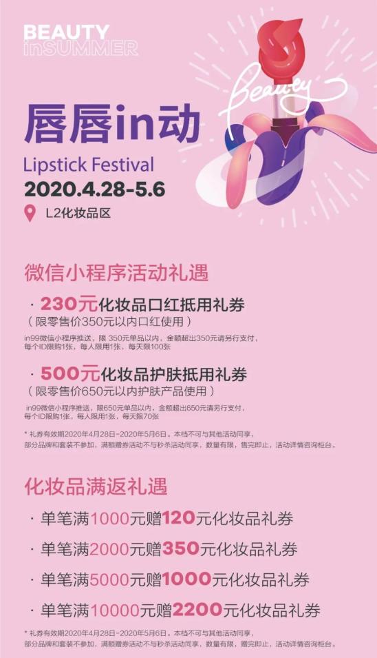 每次来逛in99都能感受到艺术和时尚的完美融合。此次五一假期银泰in99打造了趣味+优惠的系列活动,其中“唇唇in动”口红节,成了成都小仙女们讨论的焦点。