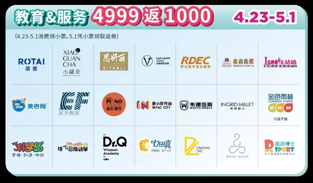此次活动期间,教育服务板块消费满4999元返1000元。
