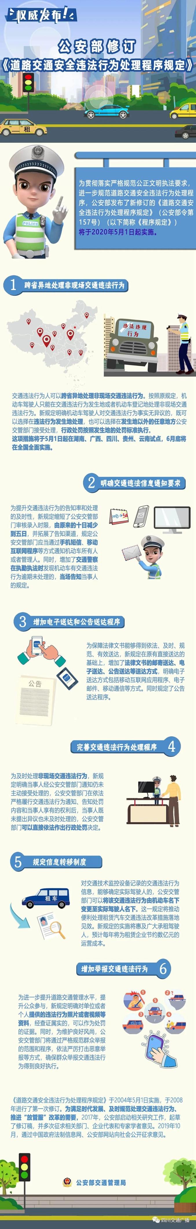 今天(29日)上午,记者从成都市交管局获悉,公安部发布了新修订的《道路交通安全违法行为处理程序规定》(以下简称《程序规定》)将于2020年5月1日起实施。