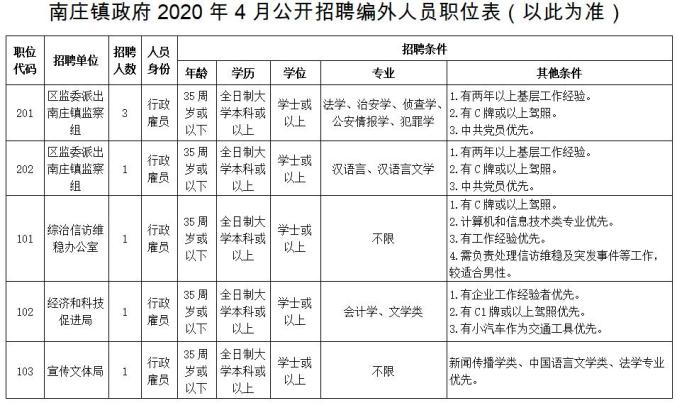 因工作需要,结合实际情况,现对2020年4月公开招聘编外人员新增部分职位等有关事项公告如下:
