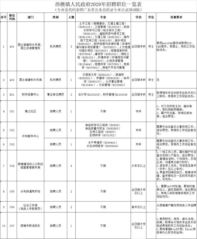 3.报名要求:报考机关聘员(A类)、事业单位聘员(B类)及自聘类岗位人员(C类岗位中社会工作局岗位除外)填写《西樵镇2020年镇属单位聘用人员报名表》;报考社会工作局岗位人员填写《西樵镇2020年残疾人专职委员报名表》。