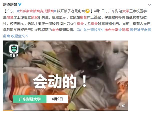 广东财经大学一些学生宿舍中,有零食大户学生的被窝,已经率先被自发前来的客人占领,变成老鼠的繁殖培育基地。