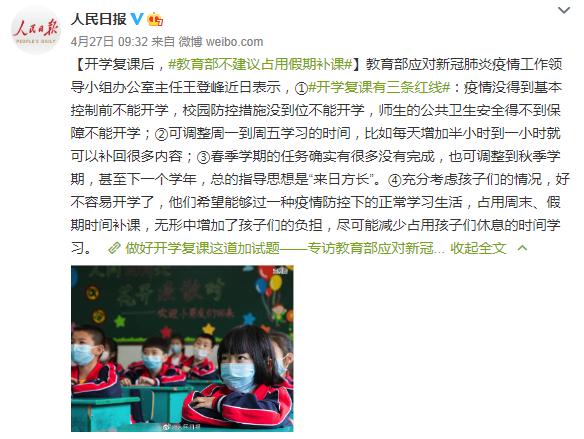 前两天,教育部也提出,开学复课后不建议占用假期补课。