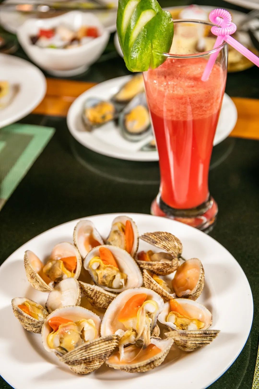 琳琅满目的海鲜挑花了双眼,不管三七二十一,统统夹到餐盘,以解相思之苦。