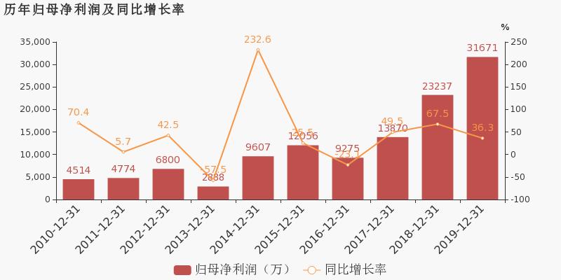 维尔利2019年年报披露,公司2019年实现营业总收入27.3亿,同比增长32.2%,增幅连续3年保持在31%以上,实现归母净利润3.2亿,同比增长36.3%,3年复合增速在35%以上。报告解释,由于公司及子公司2018年及2019年部分新签订单达到收入确认节点,因此,公司2019全年度收入及净利润较去年实现大幅增长。