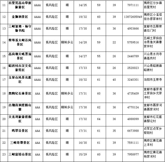 宜昌最全开放景区名单