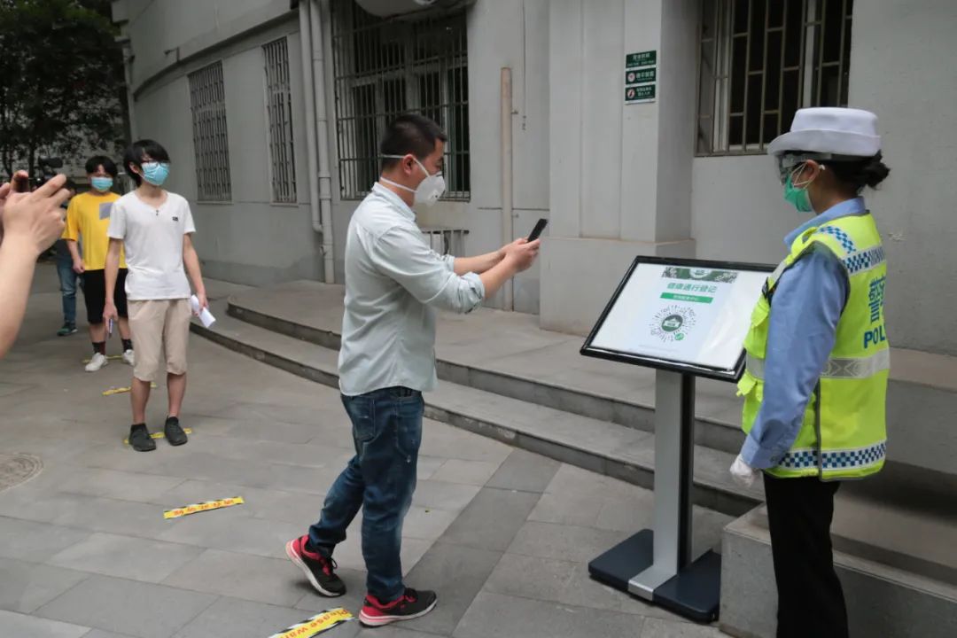 模拟再现多种情景。查验口罩、扫码、排队洗手,等候测温;在入口测温处发现其体征异常;食堂导餐员引导学生取餐;取餐者未按现场就餐提示堂食,现场管理人员进行提醒。