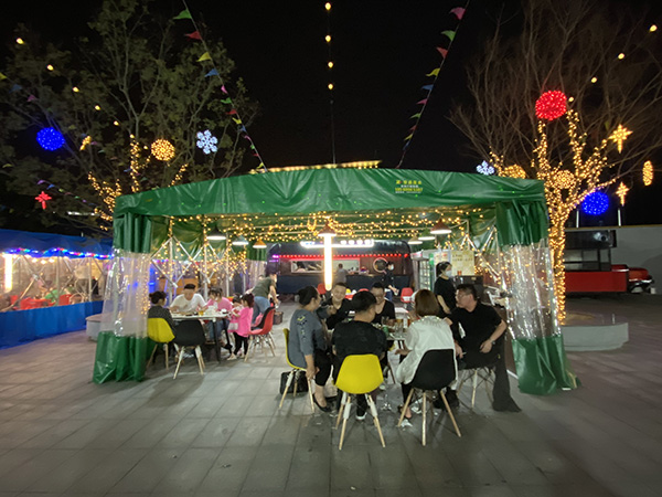 这里的消费业态是“前庭集市、后院夜市”模式,前庭沿街集市主打甜品、咖啡等轻餐饮以及各类小商品,位于户外后院的首尔夜市则是主打韩式夜排档,入驻夜市的10辆韩式餐车均经过严格筛选,经营品种包括韩国烤肉、部队火锅、海鲜、烧烤、小龙虾等,确保首尔夜市能带给人们原汁原味的韩国味道。