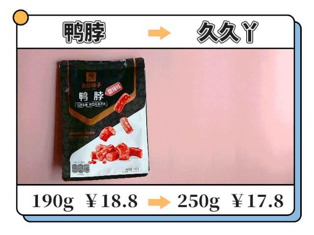 大小完全一样,良品的鸭脖更香更入味;久久丫的鲜咸口感让人忍不住一个接一个往嘴里塞~看自己口味喜好选择啦!