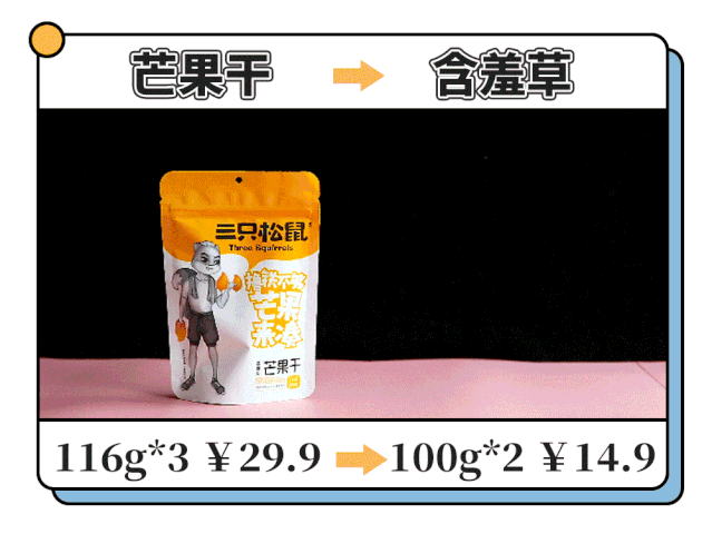 这也是两个双胞胎兄弟,不告诉你牌子,肉眼根本看不出任何区别~甚至连里面芒果干的大小,也是完美“复刻”。