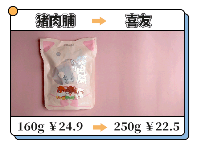 巴掌大的猪肉铺不知你见过没有,对比之下三只松鼠家的一下子娇小了许多。