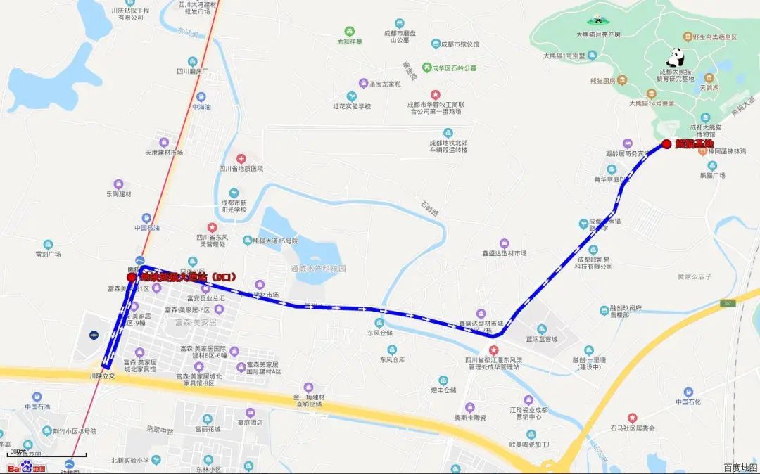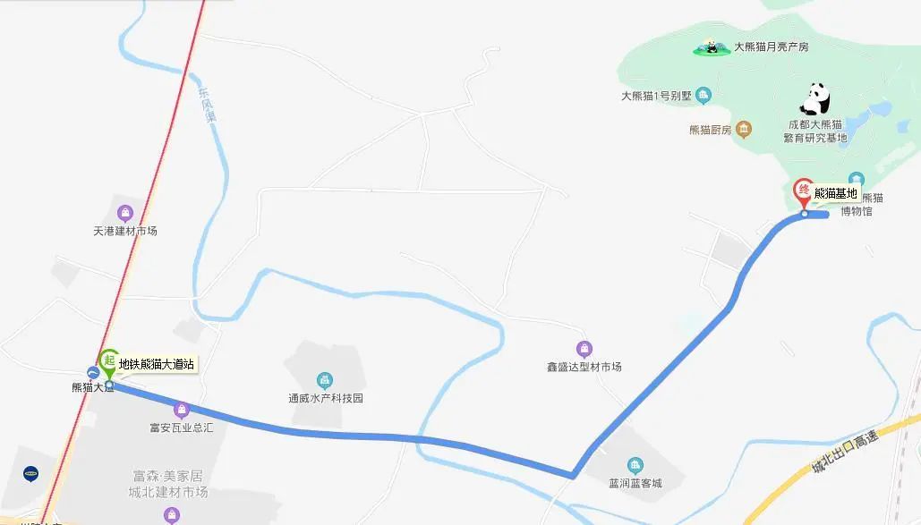 从地铁站(D口)到熊猫基地