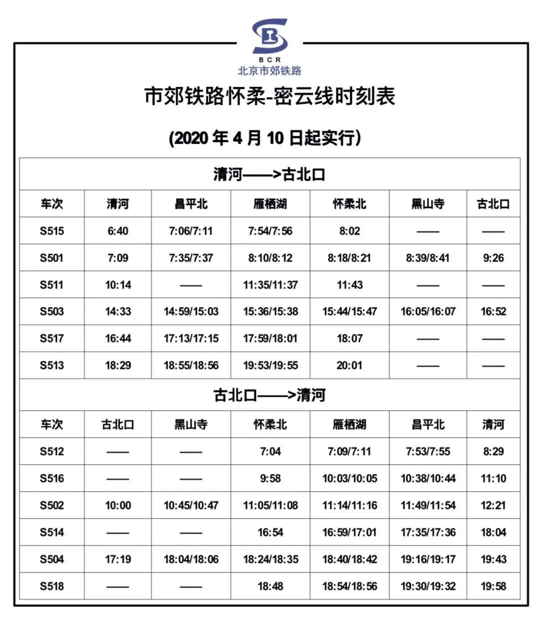 怀柔北、黑山寺和古北口6座车站