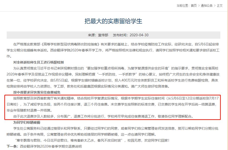 #高校给2万学生退三个月住宿费#