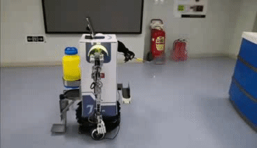 它是南开大学人工智能学院段峰教授团队研制的智能防疫遥操作机器人。