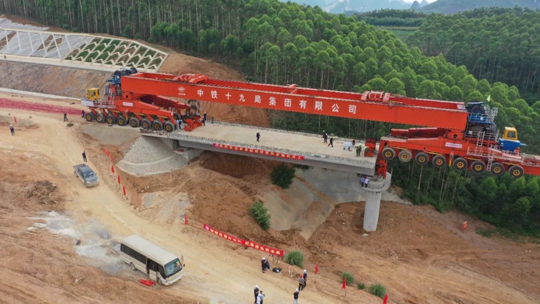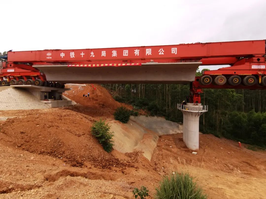 南崇高铁:南宁段首孔箱梁架设成功