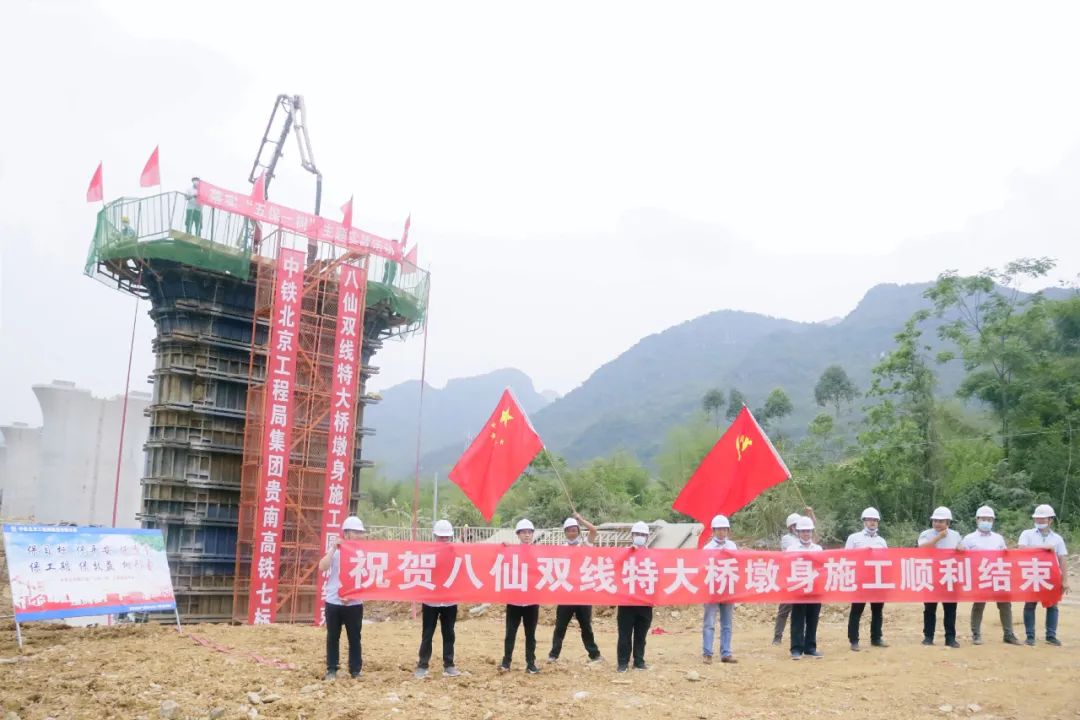 5月1日,贵阳至南宁高铁(下称贵南高铁)广西段八仙双线特大桥最后一座墩身207号墩身顺利完成浇筑,标志着该桥线下主体工程全部结束。