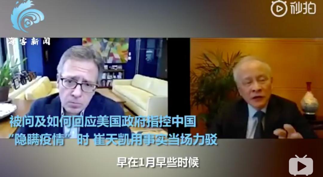 当时是美国记者怀疑中国「隐瞒疫情」,崔天凯先是耐心地解释一通,比如中国早在1月份就向全世界公布了病毒的基因序列,也分享了自己的抗疫经验...