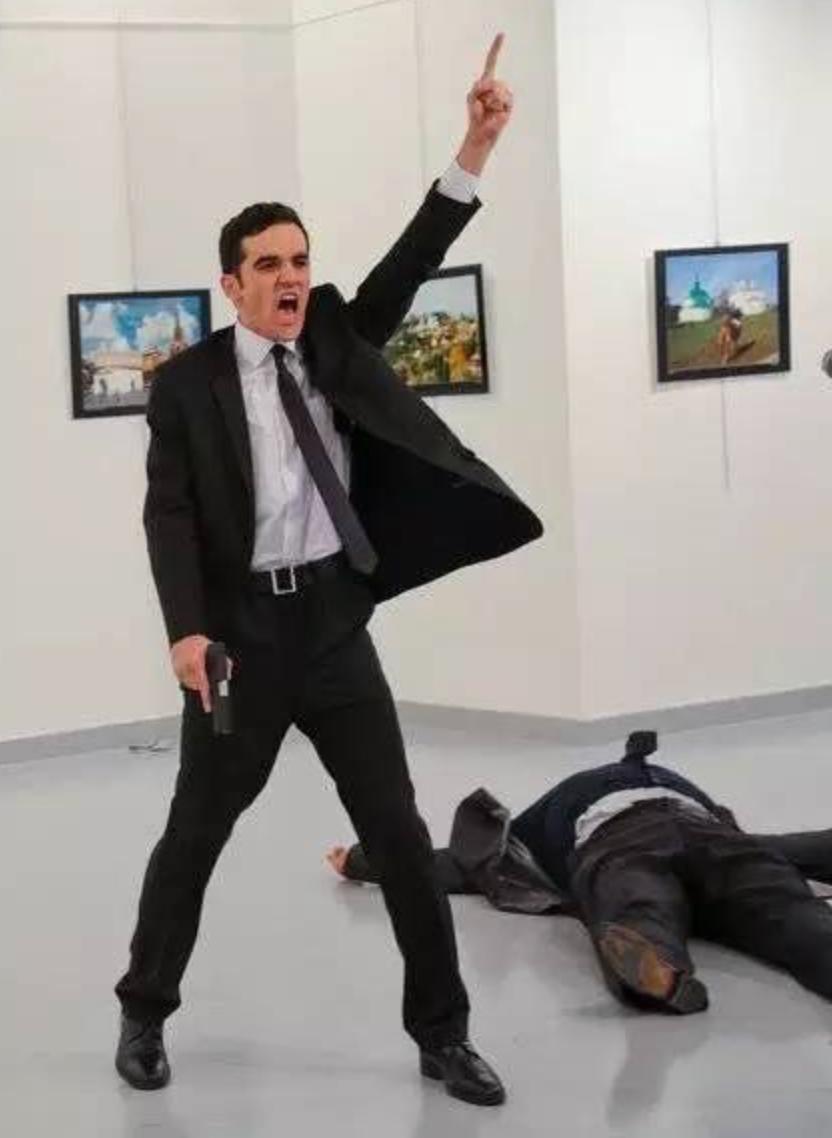 还记得16年那场轰动世界的枪击事件吗?俄罗斯驻土耳其大使在出席活动时被枪击,当场身亡。