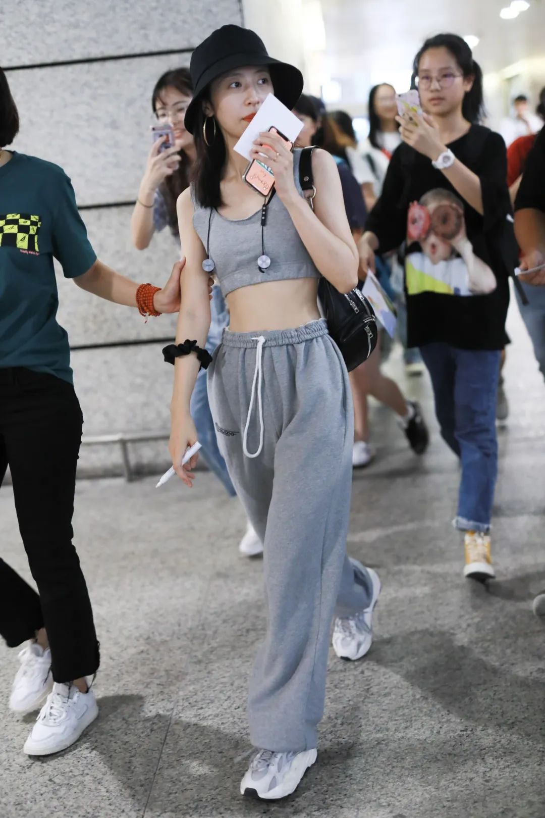 周雨彤背心款crop top搭配运动裤,随性不羁,令人直呼“好帅啊!”