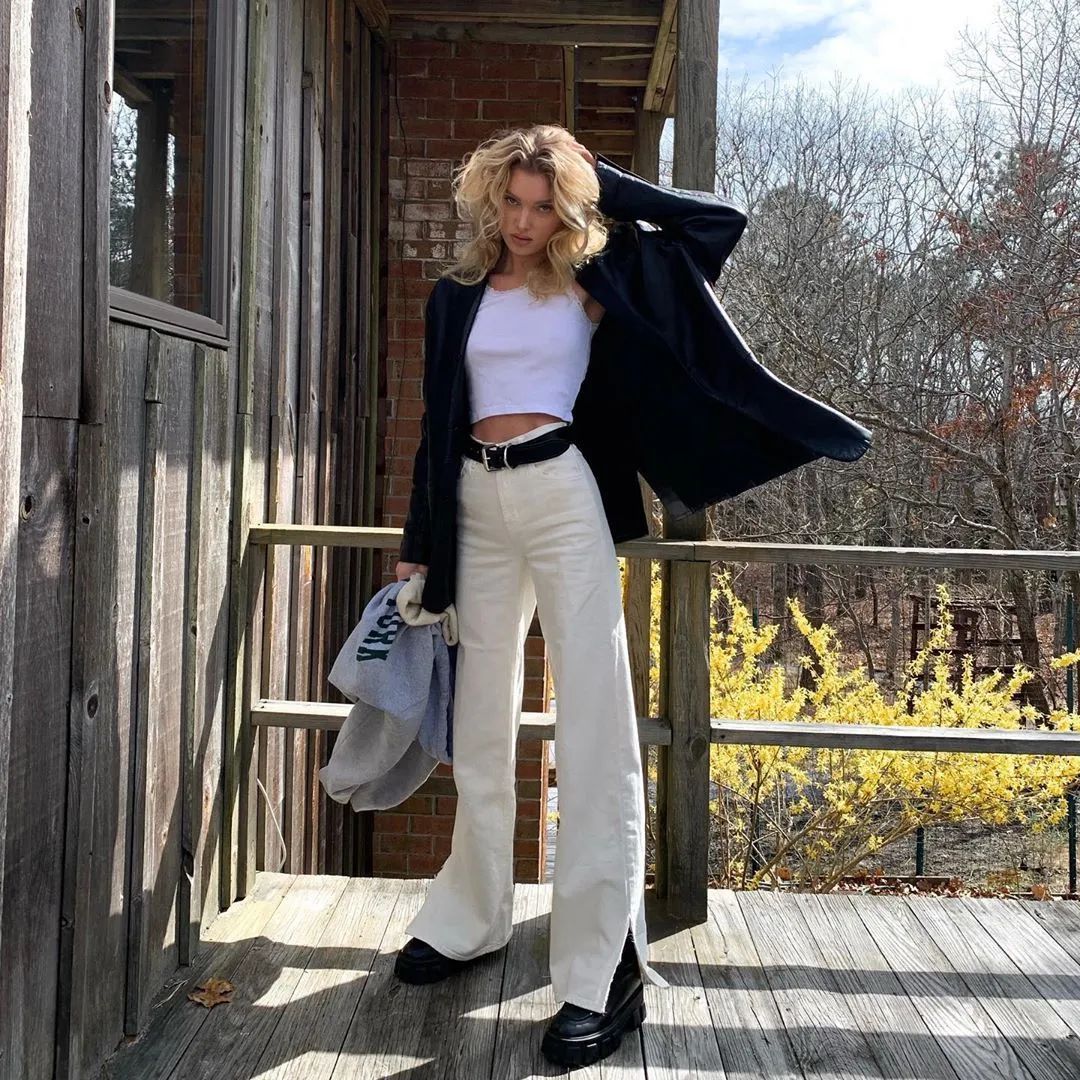 时尚博主和好莱坞明星们都偏爱短tee和背心款crop top,而它们和牛仔裤又是最佳CP。